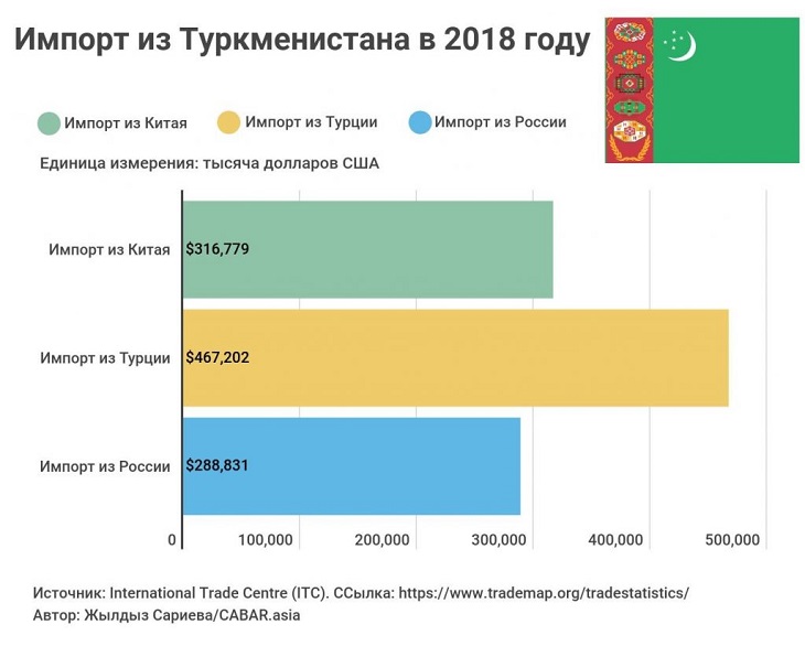В Туркменистане нет данных о том, какие товары и по каким ценам они импортируют из Китая. По этой причине используются только данные Китая об импортируемых товарах.