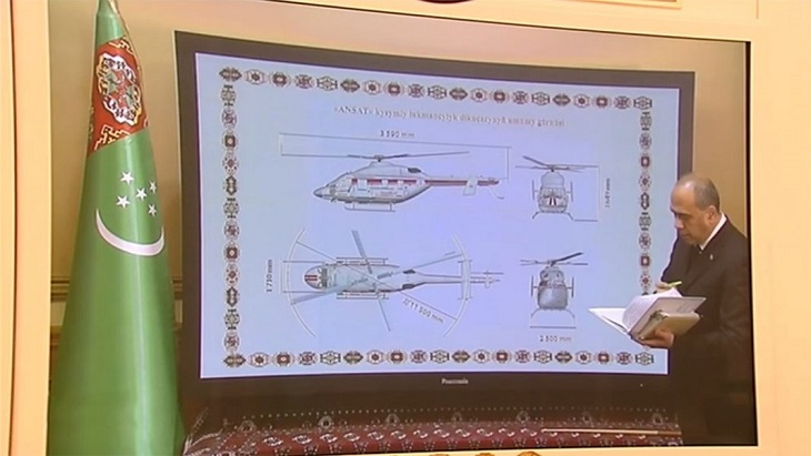 На заседании Кабмина 31 января вице-премьер по вопросам транспорта, связи и промышленности Байрамгелди Овезов доложил президенту Гурбангулы Бердымухамедову о закупке вертолетов «Скорой помощи».