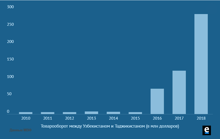 Несмотря на потепление отношений, торговля между двумя странами остается низкой, хоть они и соседи. Узбекистан, например, в 2018 году импортировал больше из далекой Литвы, чем из Таджикистана.