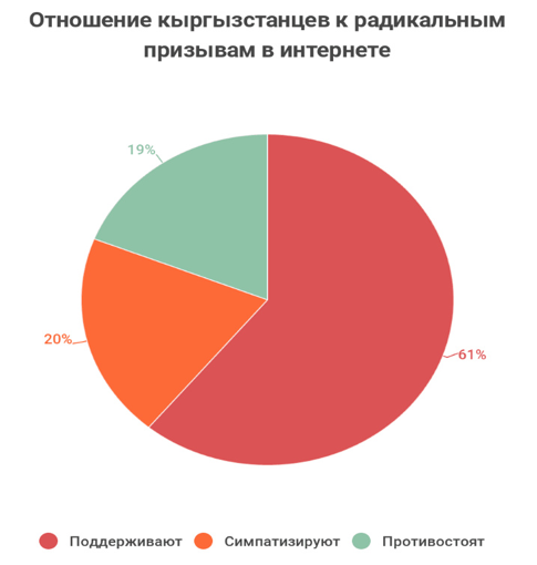 Анализируя результаты этих двух исследований, можно прийти к определенным выводам. Прежде всего, запрещенные экстремистские и террористические группировки в Кыргызстане активно используют социальные сети. Их успешная деятельность в интернет-пространстве связана с пользователями, которые распространяют их материалы, становясь, таким образом, волонтерами по продвижению радикальных идей.