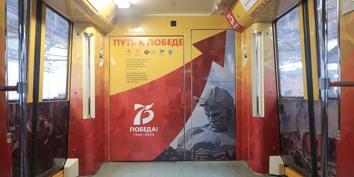 Новый тематический поезд «Путь к Победе», посвященный 75-летию победы в Великой Отечественной войне, запустили в московском метро. Состав будет курсировать по Кольцевой линии в течение полугода. За это время истории героев-фронтовиков смогут узнать около трех миллионов пассажиров. Путь к Победе» — совместный проект Российского военно-исторического общества (РВИО), Московского метрополитена и «Активного гражданина».