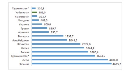* Данные по Таджикистану за 2016 г., по Туркменистану – за 2015 г.