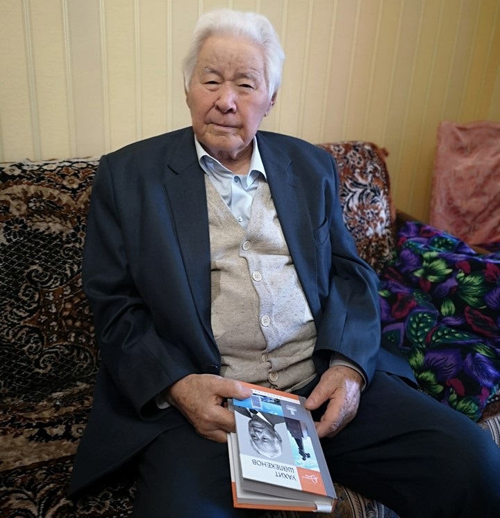 - Мне скучать некогда, - говорит Уахит Хамзинович и усаживается за свой письменный стол. - Каждый день по три-четыре часа работаю дома, больше, к сожалению, уже не могу. Много гуляю, стараюсь больше двигаться – это мне помогает. Видите книги на полке? Среди них есть мои научные труды по истории и этнографии Казахстана. Уже издали три тома, четвертый — в печати. Так я себе загадал: если до ста лет доживу, должен опубликовать десятитомник...
