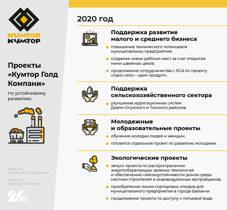 Помимо поддержки устойчивых проектов, реализуемых в регионе, «Кумтор Голд Компани» отчисляет 1 процент от валового дохода в Фонд развития Иссык-Кульской области. В 2019 году сумма составила 592,5 миллиона сомов.