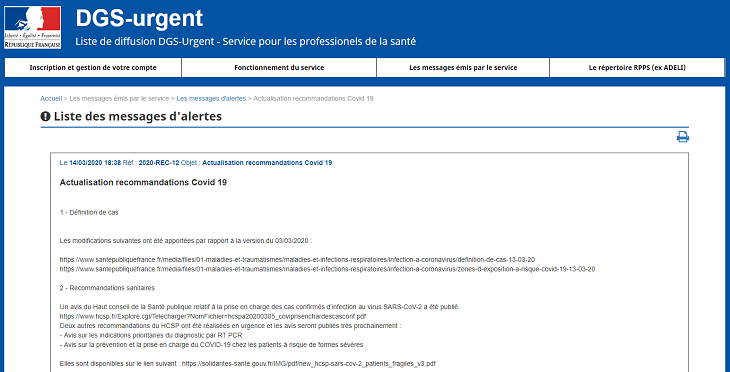 В конце рассылаемого обращения находится ссылка на французский информационный сайт для медицинских работников, якобы эта информация о противовоспалительных препаратах была срочно размещена на этом ресурсе главой министерства чрезвычайной ситуации Франции.