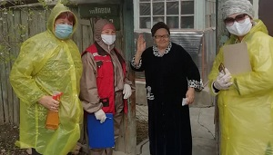Каждый день посещаем по 10-15 человек, раздаём им продуктовые наборы с необходимыми продуктами (масло, мука, крупы) и дезинфицирующие средства (антисептики, мыло). Самим соцработникам тоже выдали средства защиты – маски и плащи.