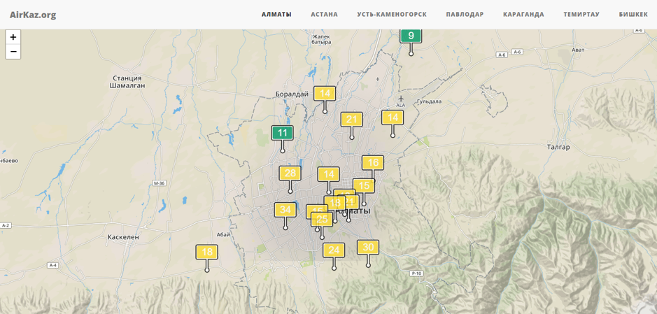 К слову сказать, в первый же день введения карантина в Алматы, соцсети наводнили фотографии пользователей, на которых воздух выглядел визуально чище, а газетные полосы срочно задались вопросом стоит ли связывать заметное сокращение частиц PM2.5 до вариации от 22 до 46 частиц со снижением трафика городских и иногородних машин. По данным на 7 апреля, с 19 марта этот показатель снизился еще больше, так как на день написания данной статьи датчики AirKaz показывают вариацию от 9 до 35 частиц.