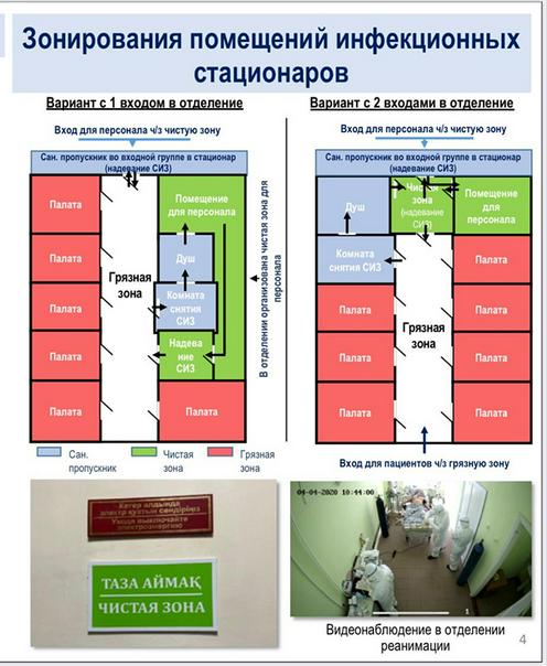 «Нам заранее известно, что привезут больного с подтвержденным КВИ. Готовимся. Скорая привозит больного в капсулах. Для каждого отделения у нас есть свой вход, — описывает Тамара Утаганова. — Есть мельцеровский бокс на первом этаже, где вход непосредственно в палату, минуя приемный покой. Больного встречают один врач и одна медсестра. Информация в регистратуру передается по телефону. Больного в тяжелом состоянии сразу же доставляют в палату интенсивной терапии (ПИТ). Вход также с улицы. Больного осматривает врач-инфекционист, врач-реаниматолог, определяет степень. Например, нужна ли ему неинвазивная ингаляция легких или сразу требуется (подключение к) ИВЛ.