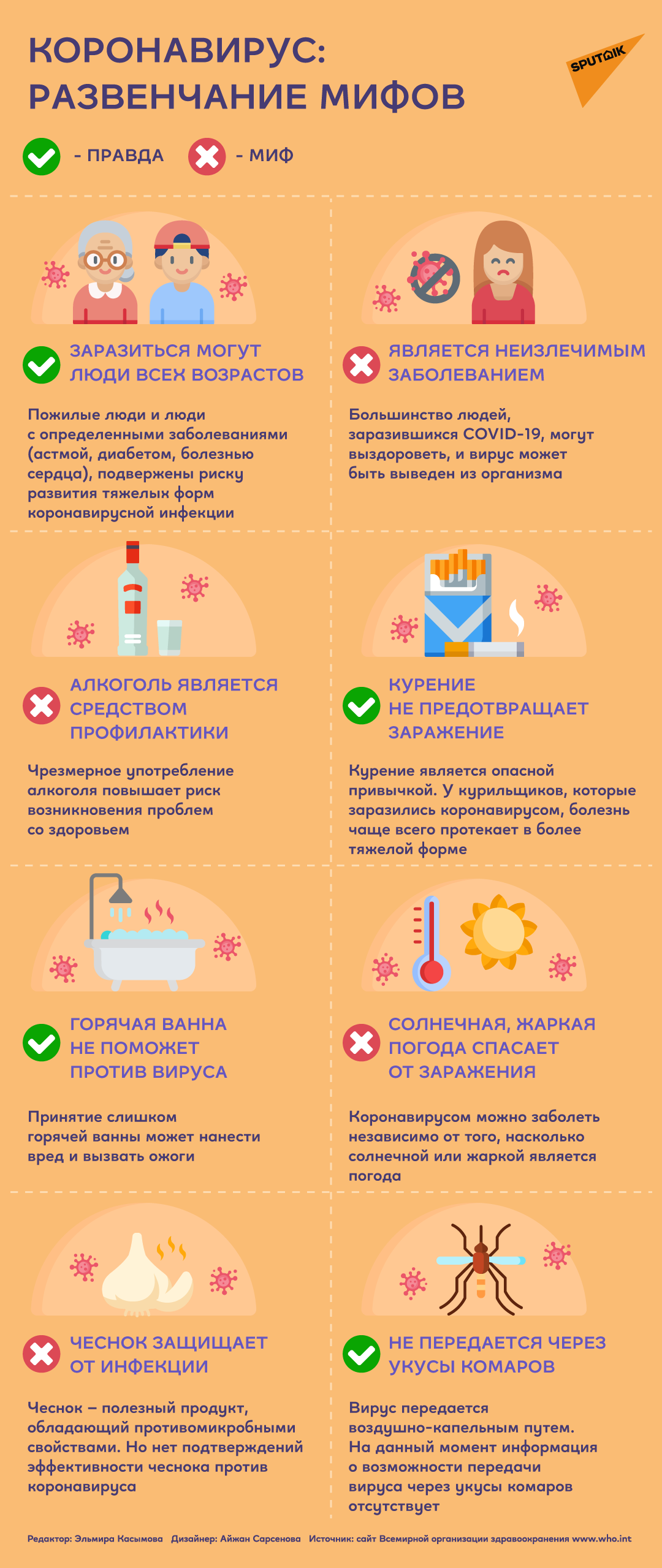 Спасает ли чеснок от коронавируса? Можно ли излечиться от этой смертельно опасной болезни? В инфографике Sputnik Казахстан читайте, что правда, а что миф