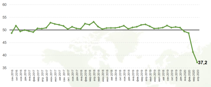 Наиболее низкий показатель – в строительстве. Тут по итогам апрельского опроса индекс составил -37 пунктов (месяцем ранее – минус 22). Показатель в сфере услуг снизился с минус 27,4 до минус 34. В промышленности – с минус 19,3 до 24,2 пунктов.
