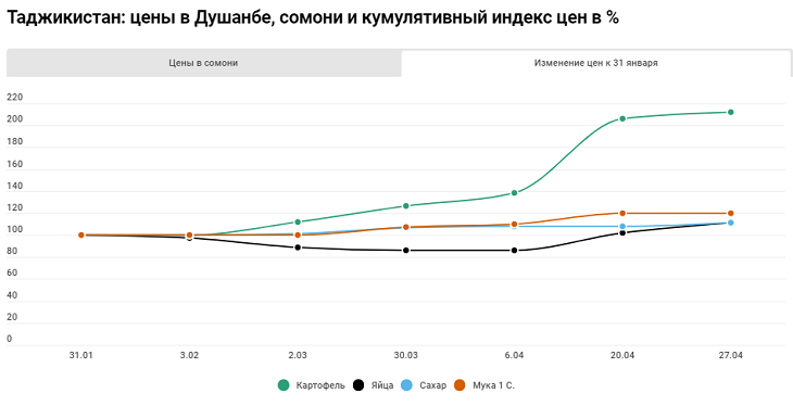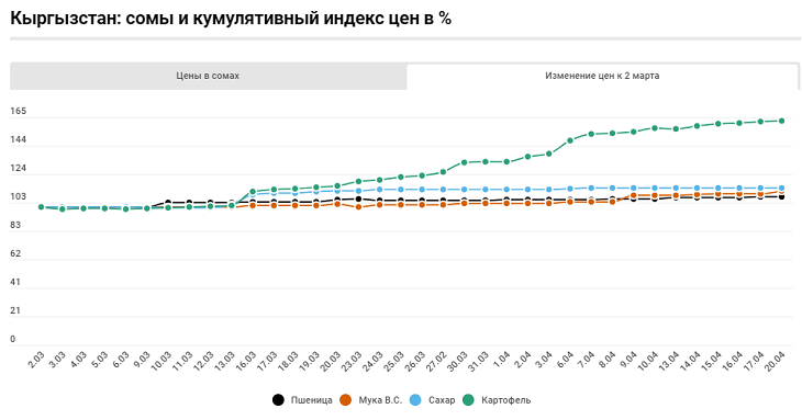 Во всех странах лидером по росту цен является картофель и сахар, что является сезонным изменением.