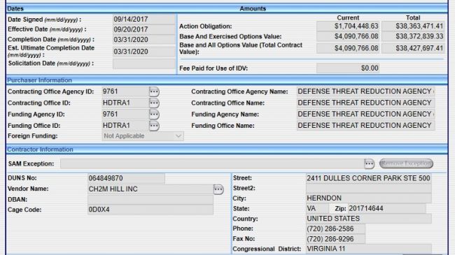 Любопытно, что в марте, почти за месяц до заявлений, подрядчик CH2M HILL должен был завершить передачу операций и обязанностей по поддержке объектов, которые участвуют в американской военной Программе биологического взаимодействия (CBEP) в Казахстане. Об этом говорится в контракте на 2017−2020 годы между DTRA и CH2M HILL стоимостью $ 38 млн. Там же указывается, что подрядчик при этом продолжает осуществлять управление объектами и поддерживает такие операции, как научные тренинги, совместные исследования и надзор за операционной деятельностью.