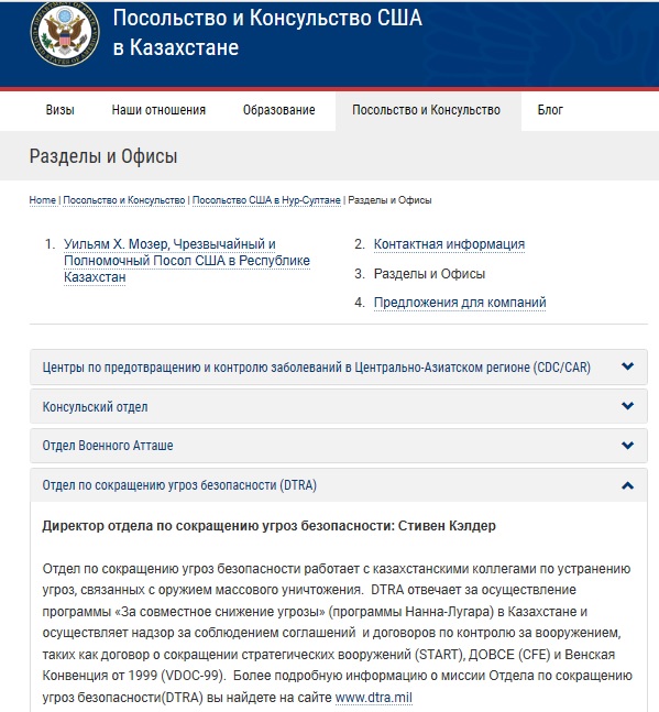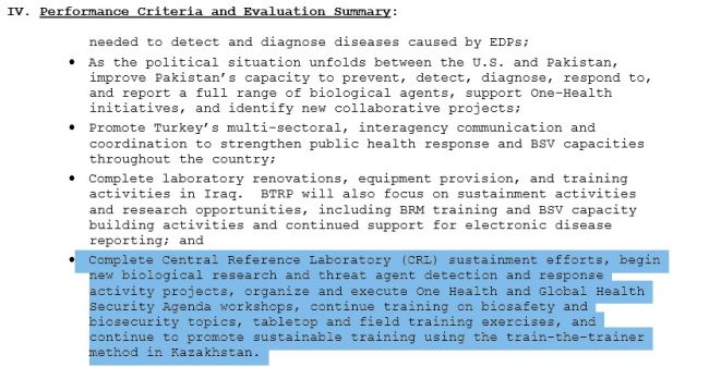 В проекте бюджета DTRA на 2020 год говорится, что агентство планирует начать новые биологические исследования в Казахстане и продолжать обучение местных специалистов.