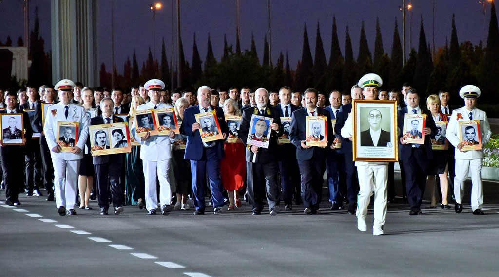 При этом пропагандистские лакеи как-то умудрились превратить и это мероприятие в отправление культа личности президента Гурбангулы Бердымухамедова. Позаимствовав у России идею «Бессмертного полка», Туркменистан в частности организовал собственное шествие людей с портретами ветеранов войны. Во главе процессии вышагивал офицер в белой форме с портретом покойного деда президента, Бердымухамеда Аннаева, который и в прошлом служил объектом правительственного мифотворчества.