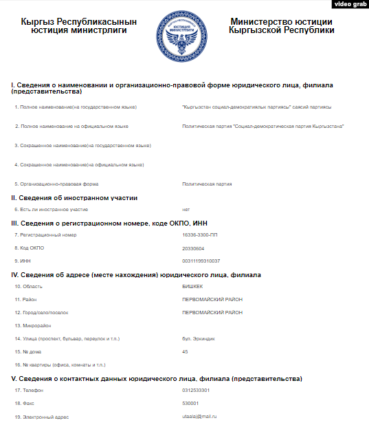 В 2019 году Министерство юстиции внесло изменения в профайл Социал-демократической партии Кыргызстана в базе данных юридических лиц. В частности, руководителем СДПК обозначен Сагынбек Абдрахманов вместо Алмазбека Атамбаева, а юридический адрес изменен с «улицы Шабдан Баатыра, 4б» на «бул. Эркиндик, 45».