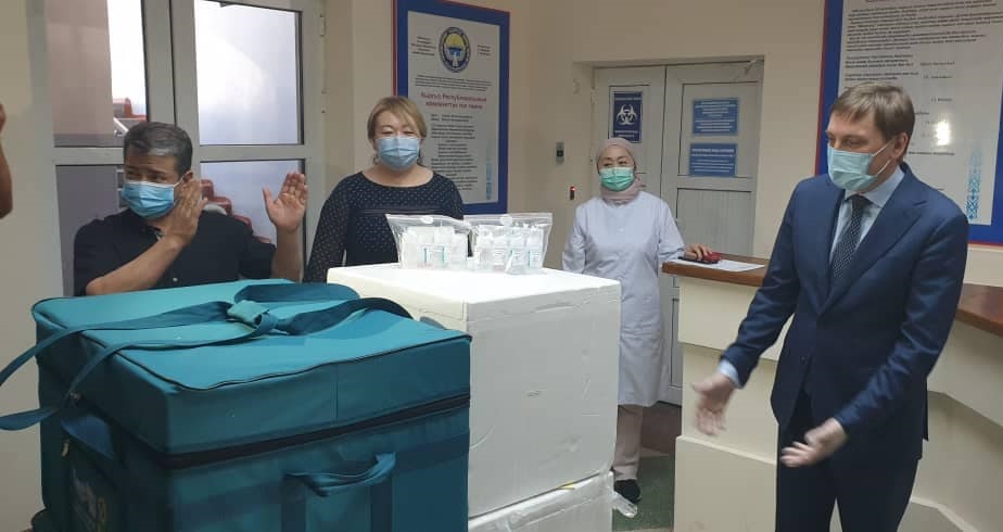 Представители прибышей в Кыргызстан российской делегации специалистов-эпидемиологов во главе с заместителем руководителя Роспотребнадзора Вячеславом Смоленским подарили кыргызстанским медучреждениям 30 тысяч тест-систем для диагностики коронавируса.