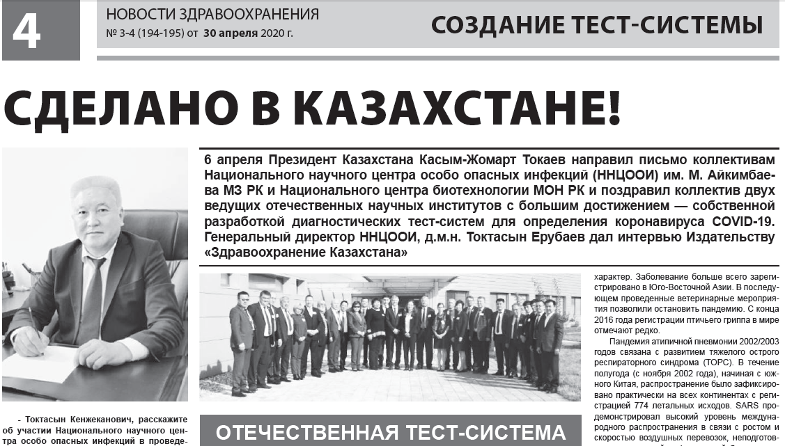Директор ЦООИ Токтасын Ерубаев тоже хвастался журналистам: «Самостоятельно, без участия зарубежных ученых, разработали два варианта ПЦР-тестов».