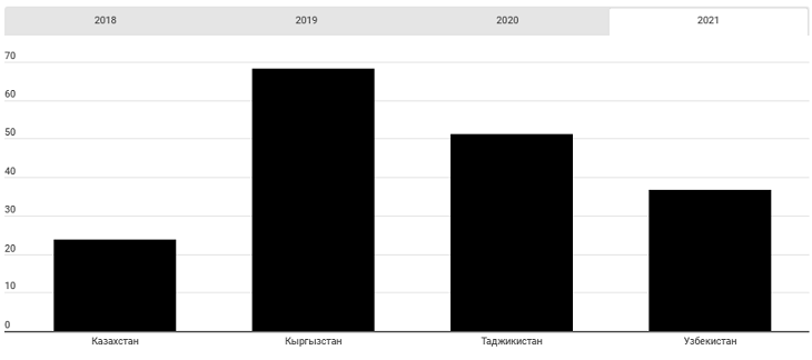 Общая сумма переводов из России в четыре страны Центральной Азии снизилась на 240 млн. долл в первом квартале 2020 по сравнению с кварталом годом ранее. В процентном отношении денежные переводы в Таджикистан снизились на 22%, в Кыргызстан - 20%, в Узбекистан - на 7%.