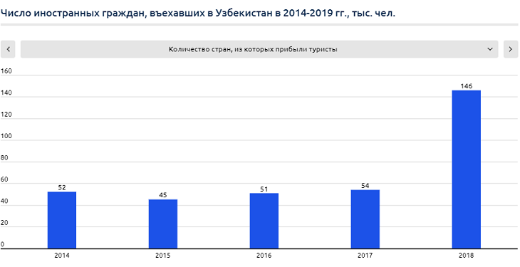 Результаты принятых мер и инициатив по развитию туризма в Узбекистане не заставили себя долго ждать. С 2016 по 2019 годы общее число прибывших иностранцев увеличилось в 4 раза, а число въезжавших с целью «туризм» («путешествие») выросло в 6 раз.