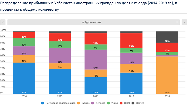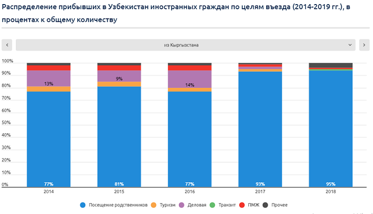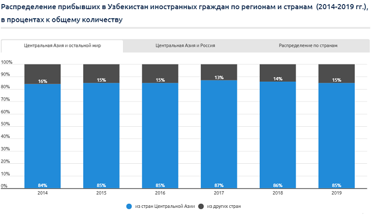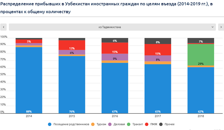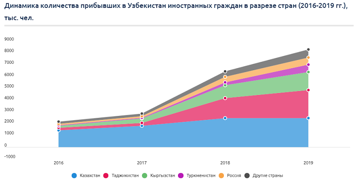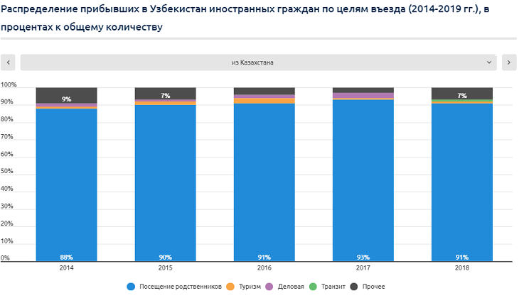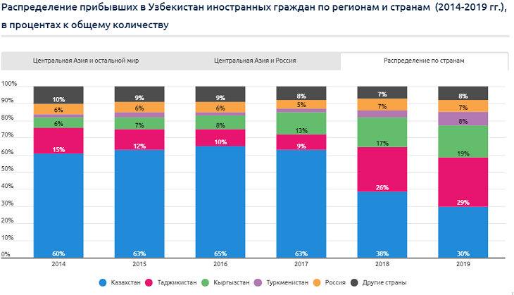 За последние 3 года произошли существенные изменения в структуре распределения туристов из Центральной Азии. За этот период доля туристов из Казахстана в общем количестве снизилась вдвое, а из Кыргызстана и Таджикистана – выросла в 2,5-3 раза. Причина тому – восстановление Узбекистаном политических и экономико-социальных отношений с Таджикистаном и Кыргызстаном, а также активизация региональных интеграционных процессов. Еще будучи временно исполняющим обязанности президента Шaвкат Мирзиёев, в сентябре 2016 года заявил, что главным приоритетом внешнеполитической деятельности Узбекистана является регион Центральной Азии, с которым связаны национальные интересы страны:
