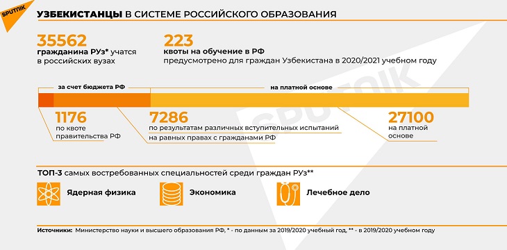 Если в 2015 году, по данным портала Study in Russia, в российских вузах учились 14 тысяч студентов из Узбекистана, сегодня их число превышает 35 тысяч.
