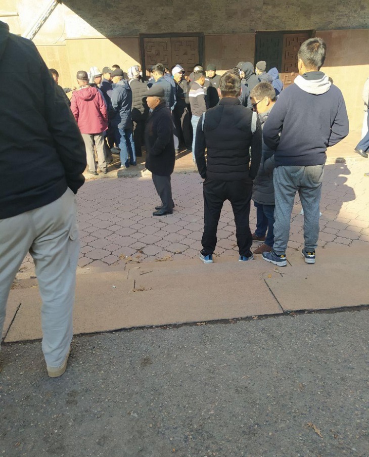 Возле Жогорку Кенеша группа людей. Они ведут себя спокойно, похоже, что их не пускают внутрь.