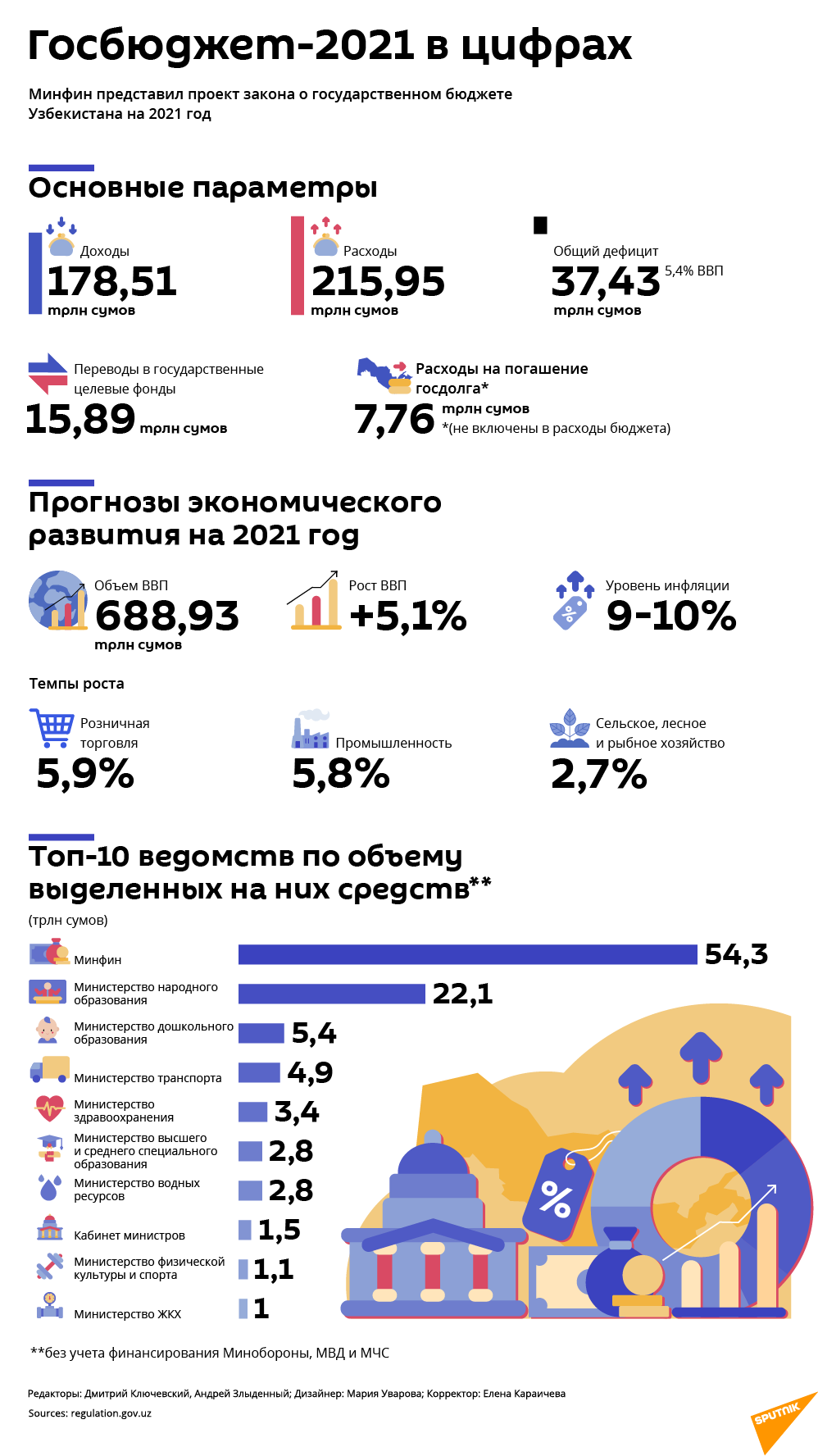 Министерство финансов Узбекистана представило проект Госбюджета на 2021 год.