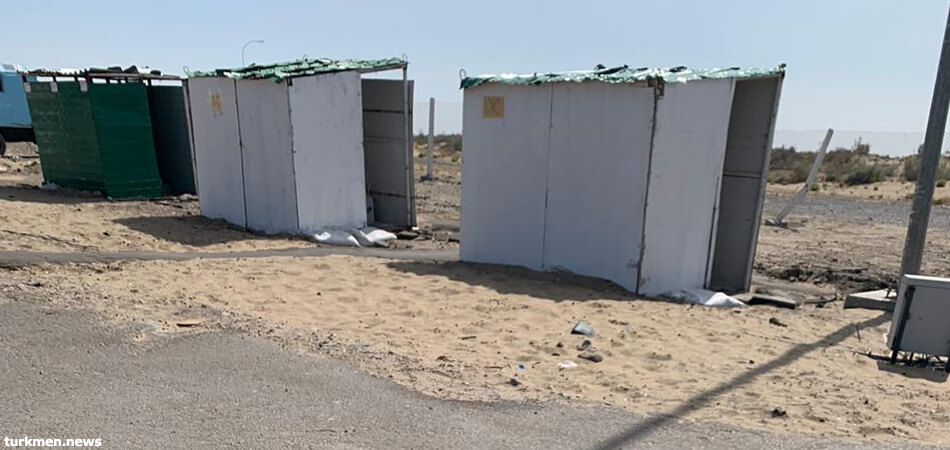 На этой неделе в распоряжение turkmen.news попало большое количество фотографий, иллюстрирующих ту антисанитарию, которую люди вынуждены терпеть в лагере близ Туркменабада. Они пользуются кустарно изготовленными душевыми и туалетами, спят и принимают пищу в палатках. Источник рассказал, что даже чистой воды в лагере нет, не говоря уж о нормальном питании. И воду, и продукты, и постельное белье обитателям лагеря привозят родственники. Если же о человеке некому позаботиться, то ему остается только страдать и терпеть.