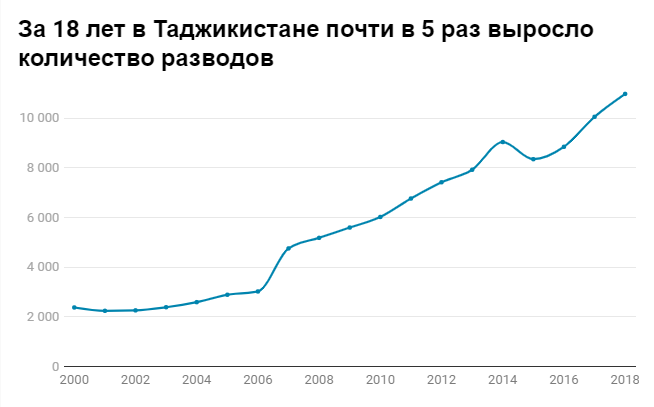 Количество разводов в Таджикистане неизменно растёт. Это приводит к многочисленным проблемам, особенно, для молодых женщин, которых традиционно готовят только к тому, чтобы быть хорошей женой и матерью. Без образования и профессии, с маленькими детьми на руках молодые женщины остаются одни, часто без поддержки родителей, которые не могут их прокормить. - в материалах Cabar.asia