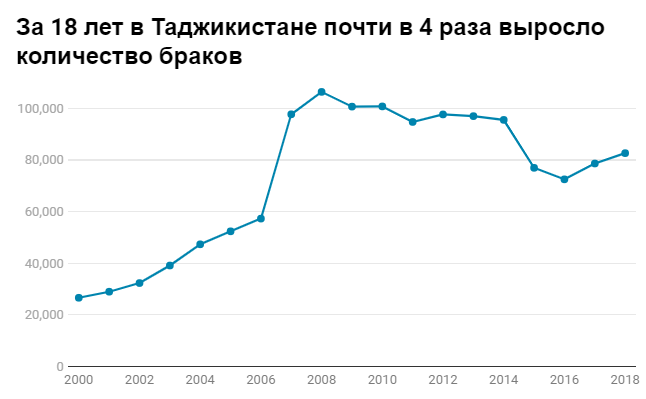 По данным, которые приводит ИА “Азия Плюс” со ссылкой на профессора Рахмона Ульмасова, ежегодно около 12 тысяч таджикских граждан регистрируют браки с россиянками.