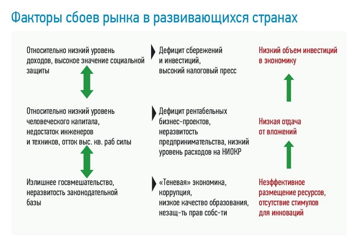 В развивающихся странах несовершенные рынки капитала, технологические и денежные экстерналии приводят к недостатку инвестиций. Кроме того, ожидания инвесторов часто требуют механизма стимулирования инвестиций в новые приоритетные отрасли. В условиях слабого частного сектора и ограниченности капитальных ресурсов только государство имеет потенциал для мобилизации и перераспределения ресурсов.