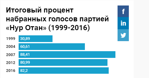 В итоге на выборах 2004 года предвестник вездесущей президентской партии «Нур Отан» – «Отан» – стала доминирующей силой по всем показателям. Дальнейшие выборные кампании еще больше цементировали лидирующие позиции «Нур Отана» (в 2007 году партия выиграла вообще все места в парламенте), а созданные партии-спойлеры либо разрешенные лояльные партийные объединения не составляли истинной политической конкуренции, создавая всем очевидный фасад партийной борьбы.