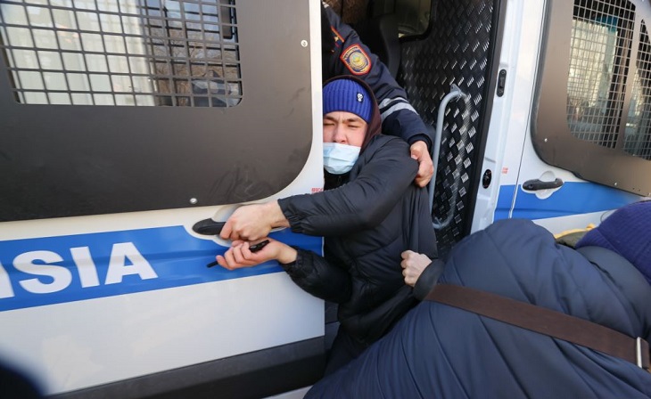 Ближе к обеду на площади начались задержания, причем, задерживали не тех, кто находился в оцеплении, а тащили в автозаки людей со стороны смежных улиц – Сатпаева и Назарбаева. При этом было непонятно, кто вообще эти люди: активисты или случайные прохожие?
