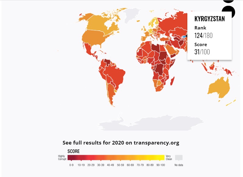 Все президенты Кыргызстана постоянно говорили о том, что борьба с коррупцией - это их приоритетное направление. Однако наиболее авторитетный источник - Индекс восприятия коррупции - демонстрирует, что за последние 10 лет не сильно преуспел в коррупционной борьбе. Индекс показывает, что если в 2012 году Кыргызстан получил 24 балла за борьбу с коррупцией, то в 2020-м - 31 бал из 100 возможных. Это столько же, сколько и у Кении, Боливии, Мексики и Пакистана. Данный рейтинг наглядно демонстрирует, что успешная борьба с коррупцией возможна только в странах с высоким уровнем жизни и доходов.