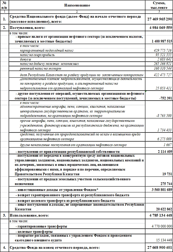 Отчет о поступлениях и использовании Нацфонда РК на 1 марта 2021 года