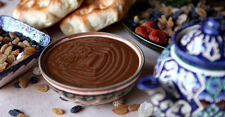 К Наврузу готовят разнообразные блюда из баранины, курицы, яиц, рыбы, которые обильно приправлены различными пряностями и украшены зеленью. Ни один праздничный стол не обходится без ритуального лакомства сумаляк (солодовая халва) – ее варят из сока проращенных зерен пшеницы с добавлением сахара и муки.