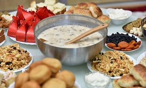 За праздничным столом в этот день собираются все члены семьи. Ассортимент праздничных блюд отличается в зависимости от региона, но в обязательном порядке на столе должны присутствовать магические предметы и продукты, которые символизируют свет, обилие, непорочность, счастье и плодородие в Новом году.
