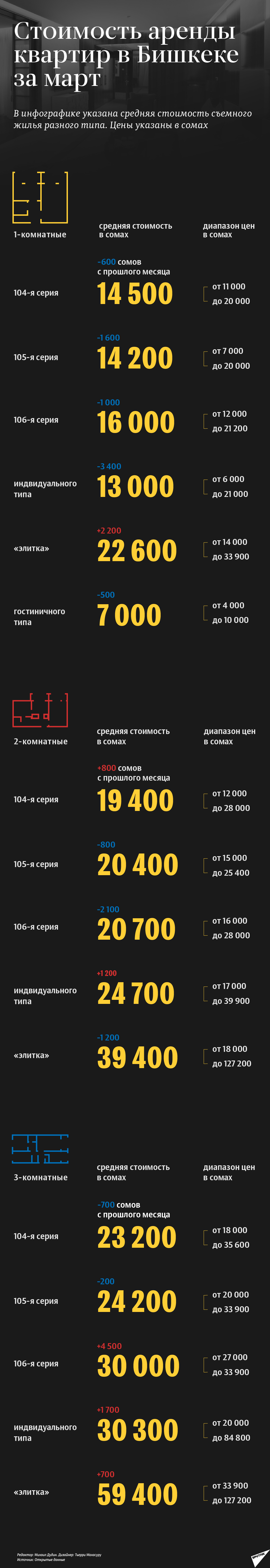 Источник: Стоимость аренды квартир в Бишкеке в марте