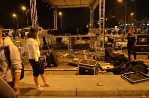 Более 100 задержанных и два десятка пострадавших - таков итог погромов в центре Алматы. Потасовка, по словам очевидцев, началась в 21.00 по местному времени. Все произошло на площади перед торговым центром, куда на концерт в честь Дня конституции пришли около 3 тысяч горожан и гостей южной столицы. Там выступали популярные звезды Казахстана. Особенно ждали, когда на сцену выйдет звезда отечественной эстрады Кайрат Нуртас, но певец исполнил одну песню и прервал выступление якобы из-за неудобной сцены. Зрителям это не понравилось. Свое недовольство они сначала выразили свистом и криками, но вскоре толпа стала неуправляемой. Молодежь начала громить сцену, рекламные щиты, кидать камни и бутылки.