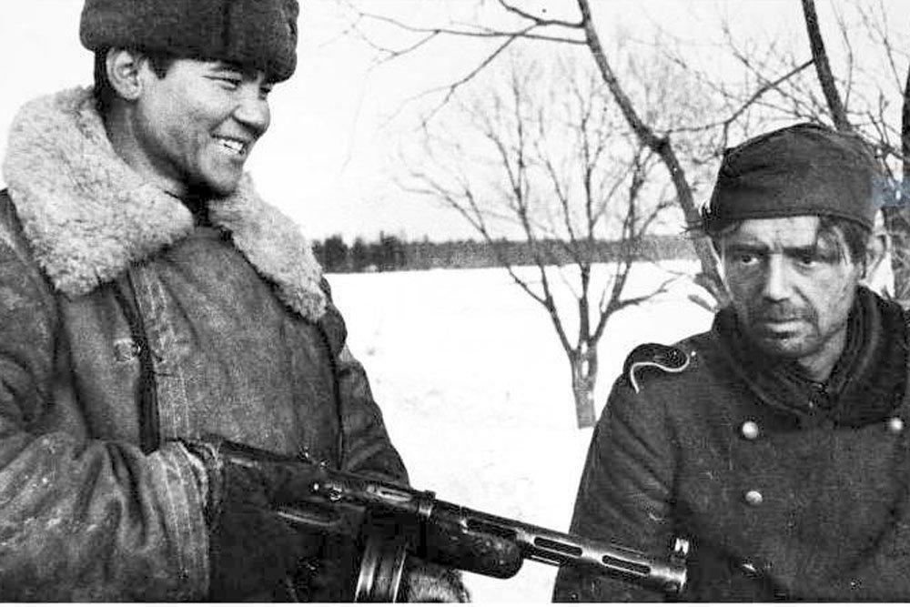 Речь шла об известном снимке, где красноармеец восточной внешности, в меховой шапке и белом армейском полушубке со снисходительной улыбкой упирается стволом пистолета-пулемета в грудь исхудавшему пленному немцу в летней форме одежды. Дата съемки - февраль 1942 года, место - станция Погостье Ленинградской области. В каталоге областного краеведческого музея фамилия героя снимка значилась совсем другая - Эдуард Ульницан. И указана она была когда-то самим автором фотографий военным журналистом Даниилом Онохиным.