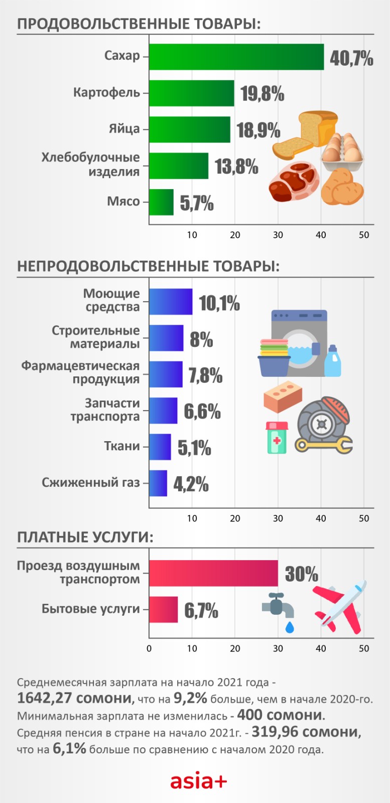 Двухразовая коррекция официального курса национальной валюты к доллару в 2020 году (в марте на 5% и в ноябре на 9,4%) является одной из главных причин роста стоимости товаров, как уже отметили, Таджикистан импортирует необходимую продукцию.