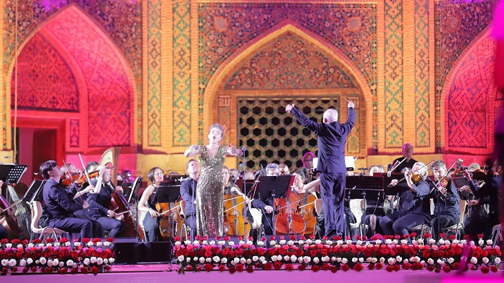 В составе Национального филармонического оркестра России объединены лучшие представители оркестровой элиты и талантливые молодые музыканты. Двадцать четвертого мая они выступили в Ташкенте, а на следующий день — на площади Регистан в Самарканде.