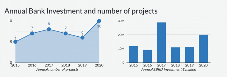 На середину ноября 2020 года портфель ЕБРР по Туркменистану составлял 59 миллионов евро на 34 проекта.