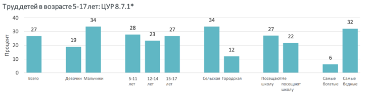 Представленные данные отражают соотношение детей, вовлеченных в указанные виды деятельности на уровне или сверх возрастных ограничений, указанных в поле определения.