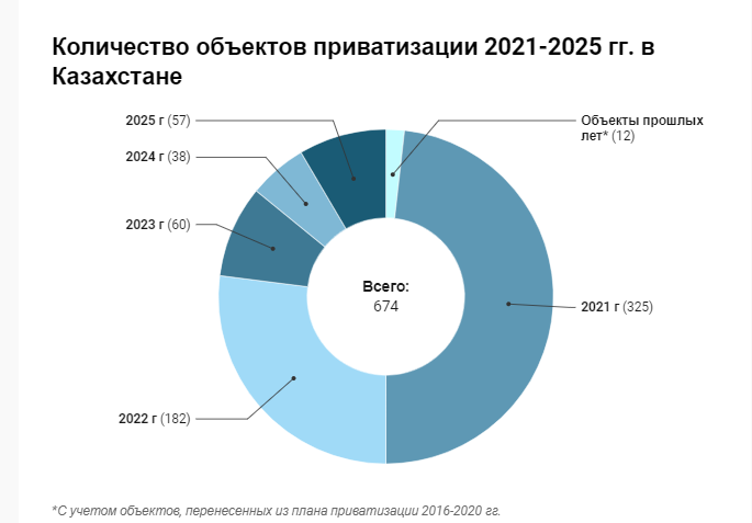 В Казахстане начата реализация нового комплексного плана приватизации. В течение 2021-2025 годов государство намерено продать на торгах или передать в доверительное управление инвесторам более 670 объектов.