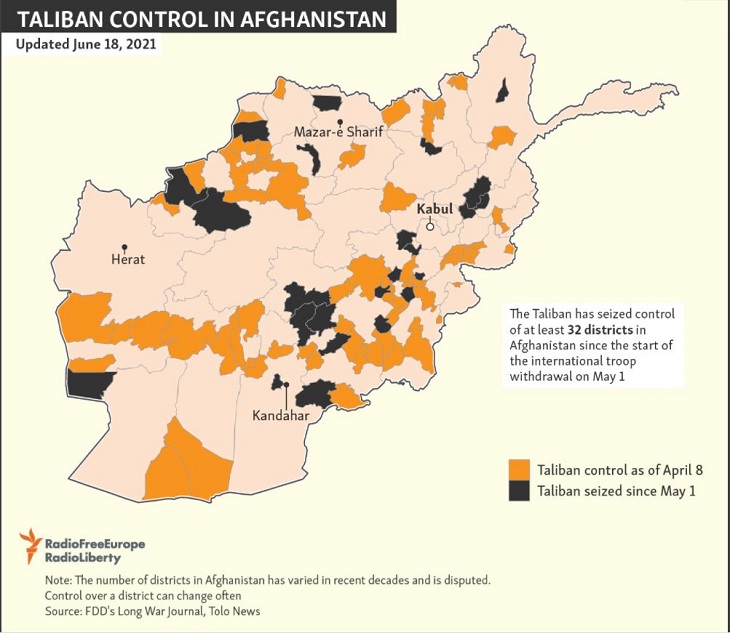 Сторонники движения «Талибан (запрещенного в Таджикистане и других странах Центральной Азии) захватили 21 июня таможенный и торговый переход Шерхан-Бандар на границе с Таджикистаном. Также ухудшилось положение правительственных сил в приграничной с Таджикистаном провинции Бадахшан. В Таджикистане уже говорят об угрозе исхода тысяч афганских беженцев.