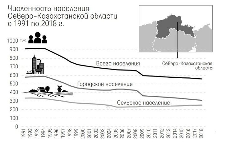 Казахстанские СМИ бьют тревогу по поводу демографической катастрофы в Северном Казахстане. В 2020 году население сократилось в Северо-Казахстанской области на 0,84%, в Костанайской области – на 0,39%, в Акмолинской области – на 0,17%, в Павлодарской области – на 0,15%.