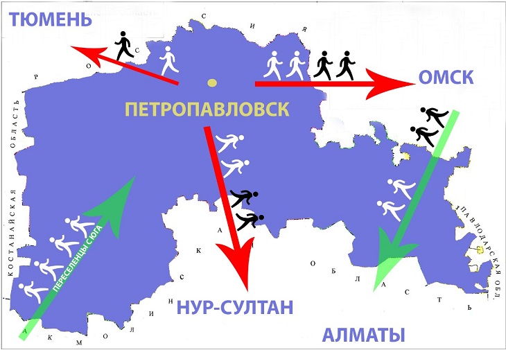 Северный Казахстан в своё время принял несколько миграционных волн из России. Активное заселение этих территорий начало происходить с 70-х годов XIX века. В советское время были новые миграционные волны из России, вызванные индустриализацией Казахстана, эвакуацией в годы Великой Отечественной войны, освоением целины. Север Казахстана к концу советской эпохи имел, во первых, русифицированный этнический ландшафт, во-вторых, промышленные комплексы, встроенные в общесоюзные производственные связи.