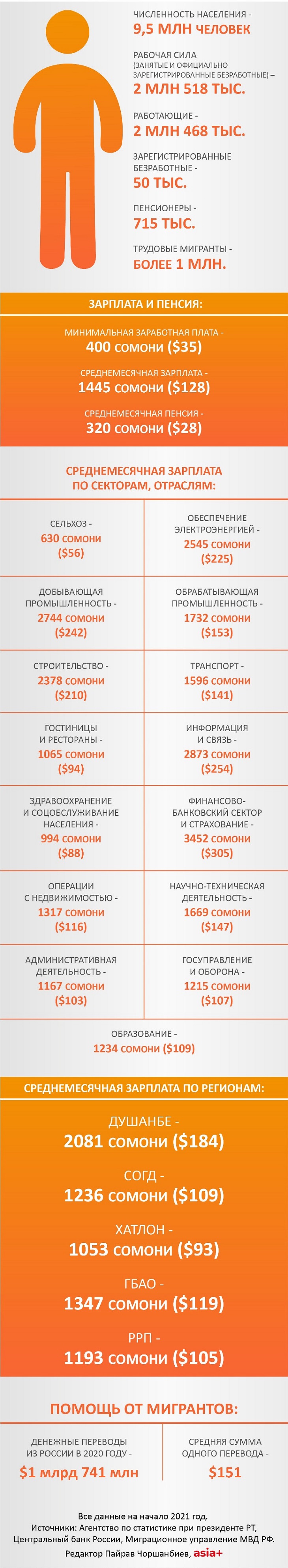 Из 9,5 миллионов человек, проживающих в Таджикистане, только два с половиной миллиона работают и обеспечивают всю страну.