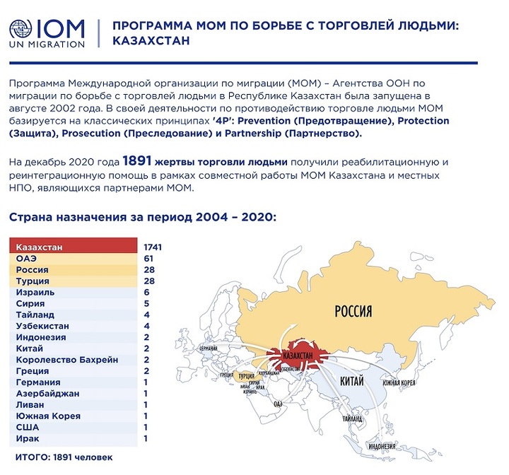 - Казахстан — страна назначения. Сотни тысяч мигрантов приезжают в поисках работы и лучшей жизни. Среди них всегда есть потенциальные жертвы торговли людьми.